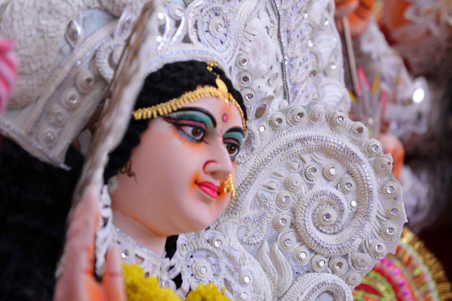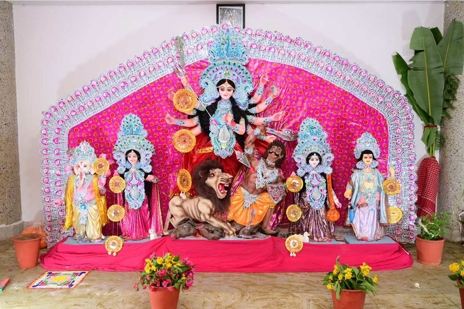 The festival usually lasts for five days, starting from Maha Shashti and ending on Vijayadashami. During these days, beautiful idols of Goddess Durga, along with her children – Lakshmi, Saraswati, Kartik, and Ganesha – are installed in pandals (temporary structures) across cities and villages. The pandals are decorated with colorful lights, flowers, and artistic themes, attracting large crowds.