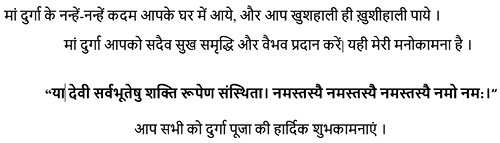 "Warmest greetings on Durga Puja! May Goddess Durga's divine blessings bring joy, prosperity, and happiness to your life. May the festive spirit fill your heart with positivity, and may you create unforgettable memories with loved ones. Wishing you a happy, blessed, and joyous Durga Puja!"